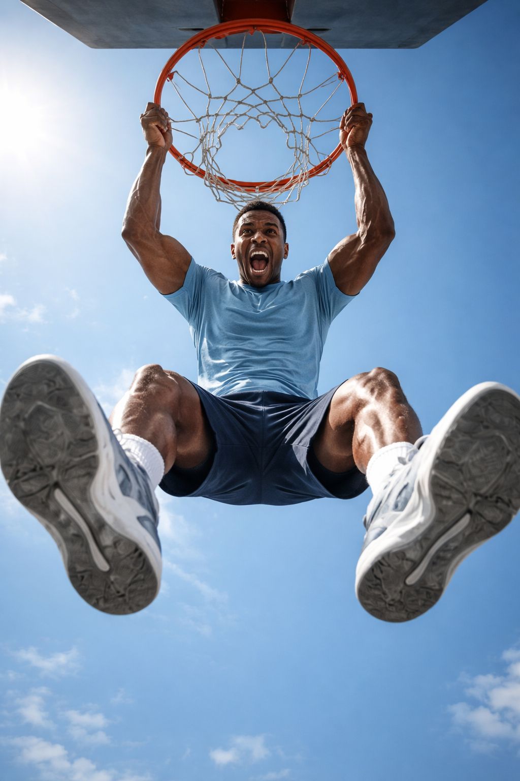 Some of the strongest basketball visuals use a low angle perspective. When the camera sits near the floor or directly under the rim, the player feels larger than life. The hoop becomes a target, the sky becomes a stage, and the body becomes pure motion. A simple jump suddenly looks heroic.